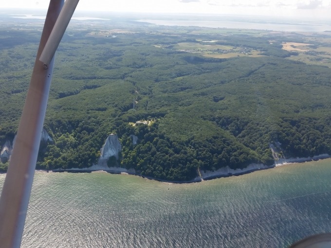 Ein erlebnisreicher Tag steht bevor, auf dieser Tour geht es zur Ostsee und zurück. Wir fliegen von Bienenfarm aus über die ausgedehnten Wälder Brandenburgs in ca. 1,5 Stunden direkt bis zur Insel Rügen. Der Flug führt über das Rheinsberger Seengebiet vorbei an Deutschlands größtem Binnensee, der Müritz. Wir sehen die Städte Neustrelitz, Demmin und Greifswald gefolgt vom Greifswalder Bodden. Schon liegt die Insel Rügen vor uns, das Meer funkelt im satten Blau. Wir landen zunächst auf dem Flugplatz Güttin. Hier kann beim Mittagessen nochmal die Kameraausrüstung gecheckt werden bevor wir weiter fliegen. Unsere nächsten Ziele sind das Ostseebad Binz, Sassnitz und das absolute Highlight, die Kreidefelden mit dem Königsstuhl. Wir fliegen entlang der Küste bis Lohme, um dann wieder nach Süden abzudrehen und Richtung Heimat zu fliegen.